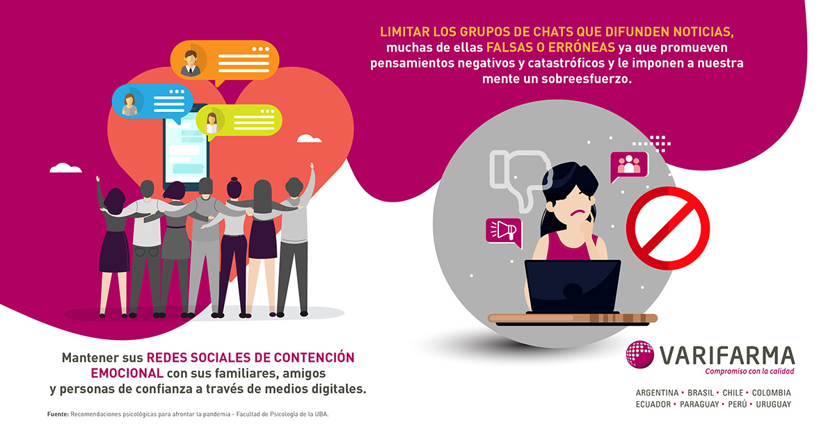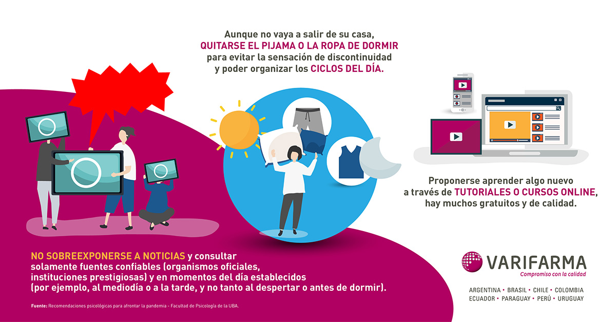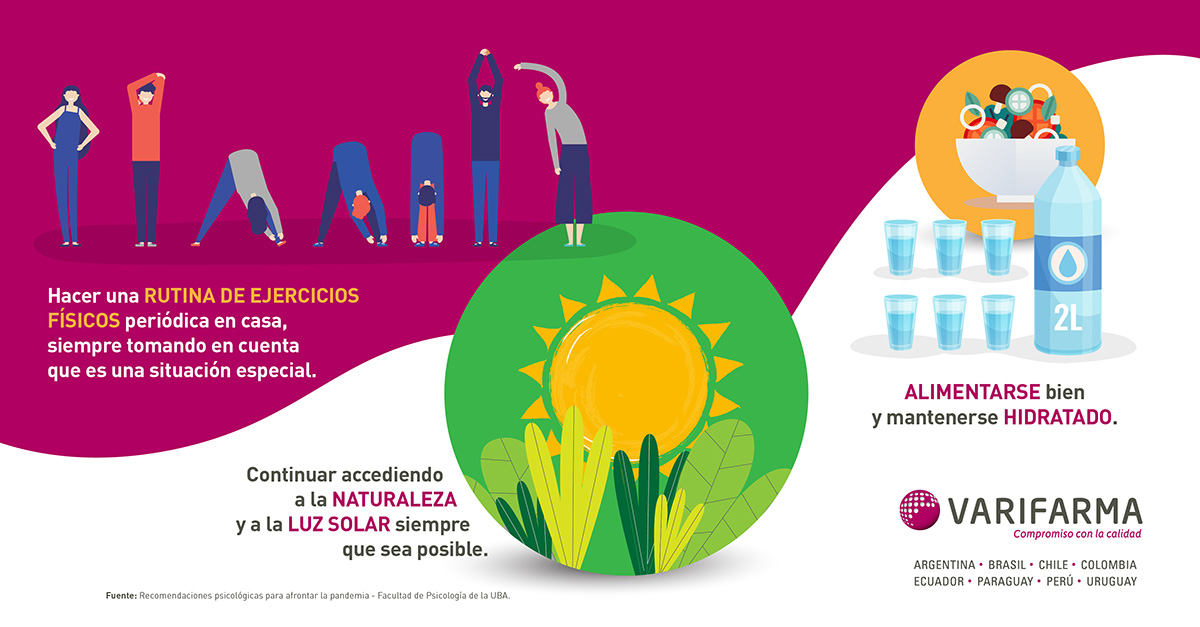A continuación, compartimos algunas recomendaciones de la Facultad de Psicología de la UBA para mantenernos activos y positivos en tiempos de cuarentena. Cuidemos nuestra salud física y mental: recordemos que mantener hábitos saludables es fundamental para la prevención de diversas enfermedades, incluido el cáncer.